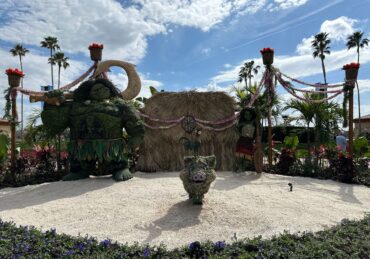 Muppets, Moana, Groot, and several more topiaries have arrived at EPCOT for the 2026 Flower and Garden Festival. Moana Located near the Port of Entry, you’ll find topiaries of Moana, Maui, and Pua on a sandy beach. A straw hut and foliage surround them. Groot Although the Groot topiary is up in World Discovery near Guardians of the Galaxy: Cosmic Rewind, he does not appear to be playing music yet. He holds a mix tape over his head. Kermit & Miss Piggy Kermit rides a bicycle, and Miss Piggy sits on top of suitcases for this topiary display. It’s located outside the Canada Pavilion where the Bambi topiary used to be. Princess Tiana Princess Tiana’s topiary is located in The American Adventure. Her green dress is made of flowers, and a large white water lily sits on her hip. Seven Dwarfs Once again this year, the Germany Pavilion has the Seven Dwarfs in topiary form. Notice the cute caterpillar! Snow White was previously installed. Geese Three geese topiaries are located in the Canada Pavilion. Mickey & Friends A large topiary display features Mickey, Minnie, Pluto, and Chip ‘n’ Dale in a flower bed. A kite and basket accessories accent the space. It’s located in the middle of the walkway leading up to Creations Shop. Butterflies A pair of butterfly topiaries surrounded by pots of flowers has been installed near the